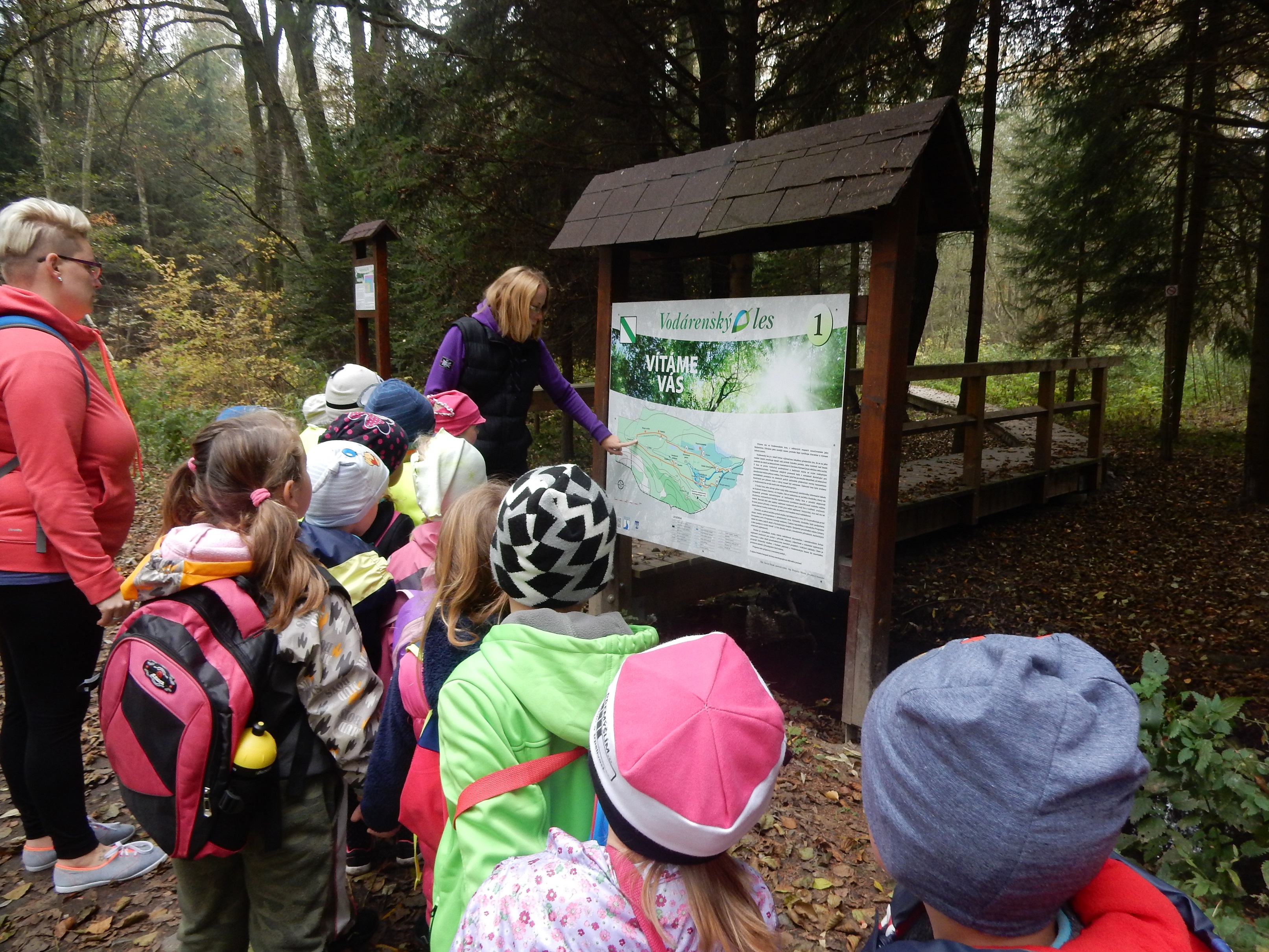 Ve čtvrtek 19.10.2017 byly děti ze školky na dopoledním výletě ve Svitavách. Cestou do “Vodárenského lesa” si prohlédly dřevěné sochy …